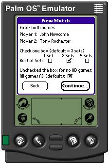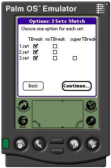 The Options Menu allows you to select the format for a Match, Set and a Game. The default values are: